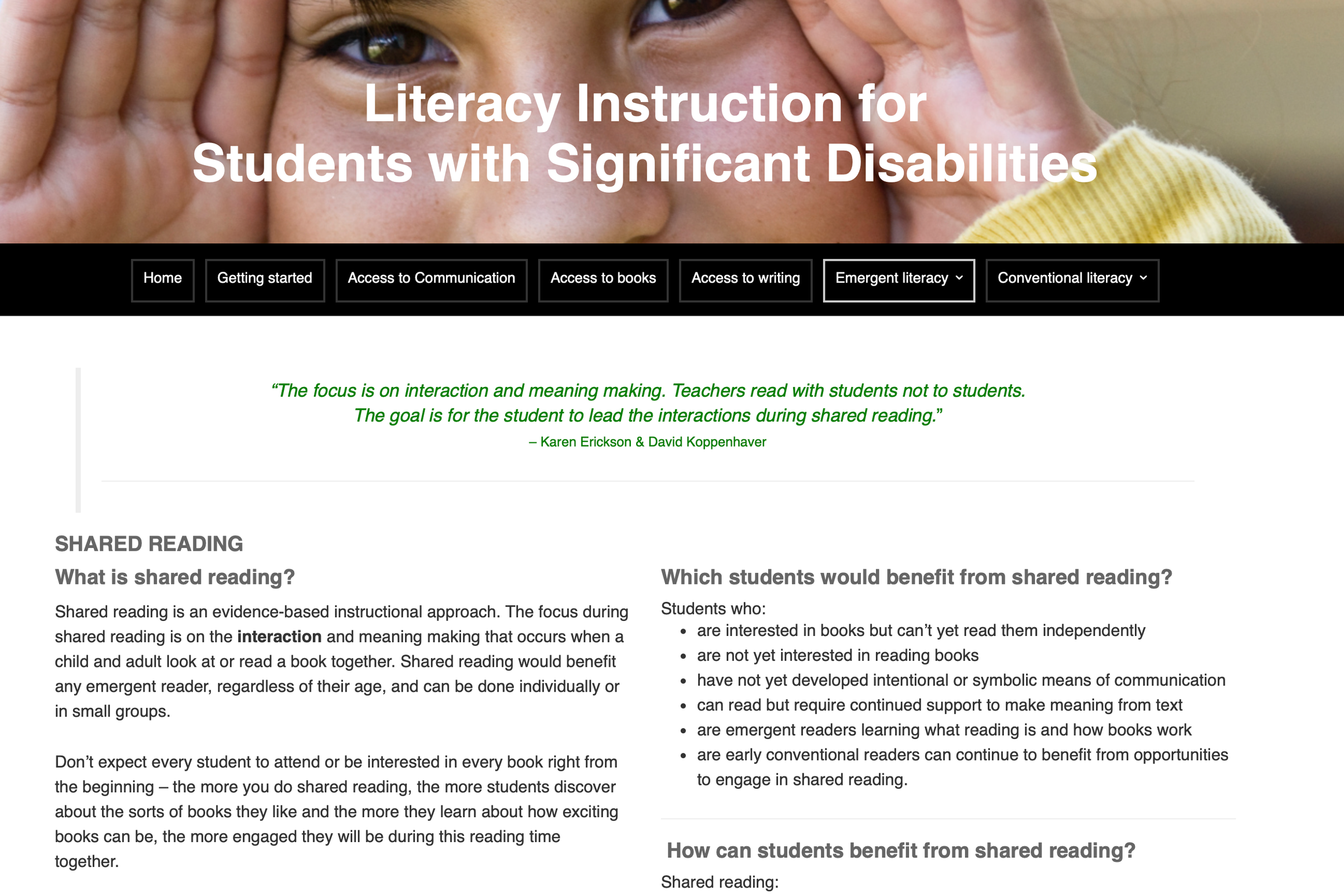 This page offers evidence-based and inclusive reading resources for learners with complex and/or significant communication needs.
